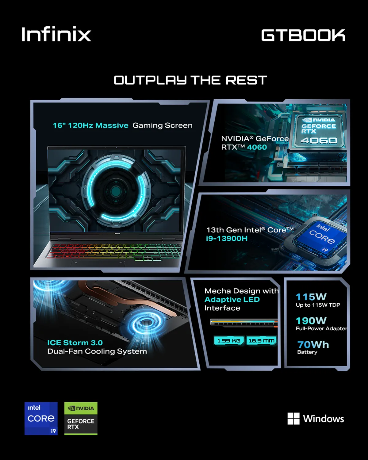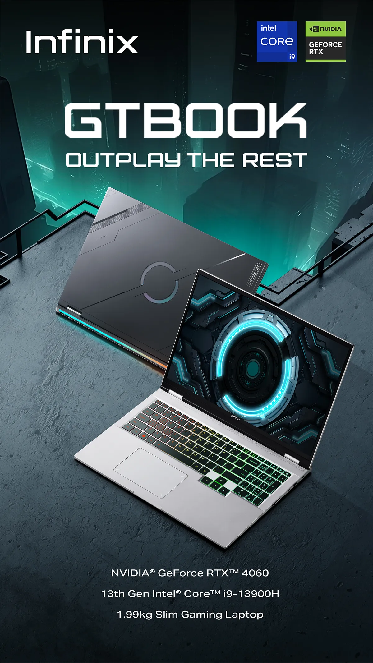 Infinix GT Book i5-134200H NVIDIA RTX 4050 GPU 16" IPS 16:10 Display 16GB + 512GB SSD Wndows 11 Home OS
