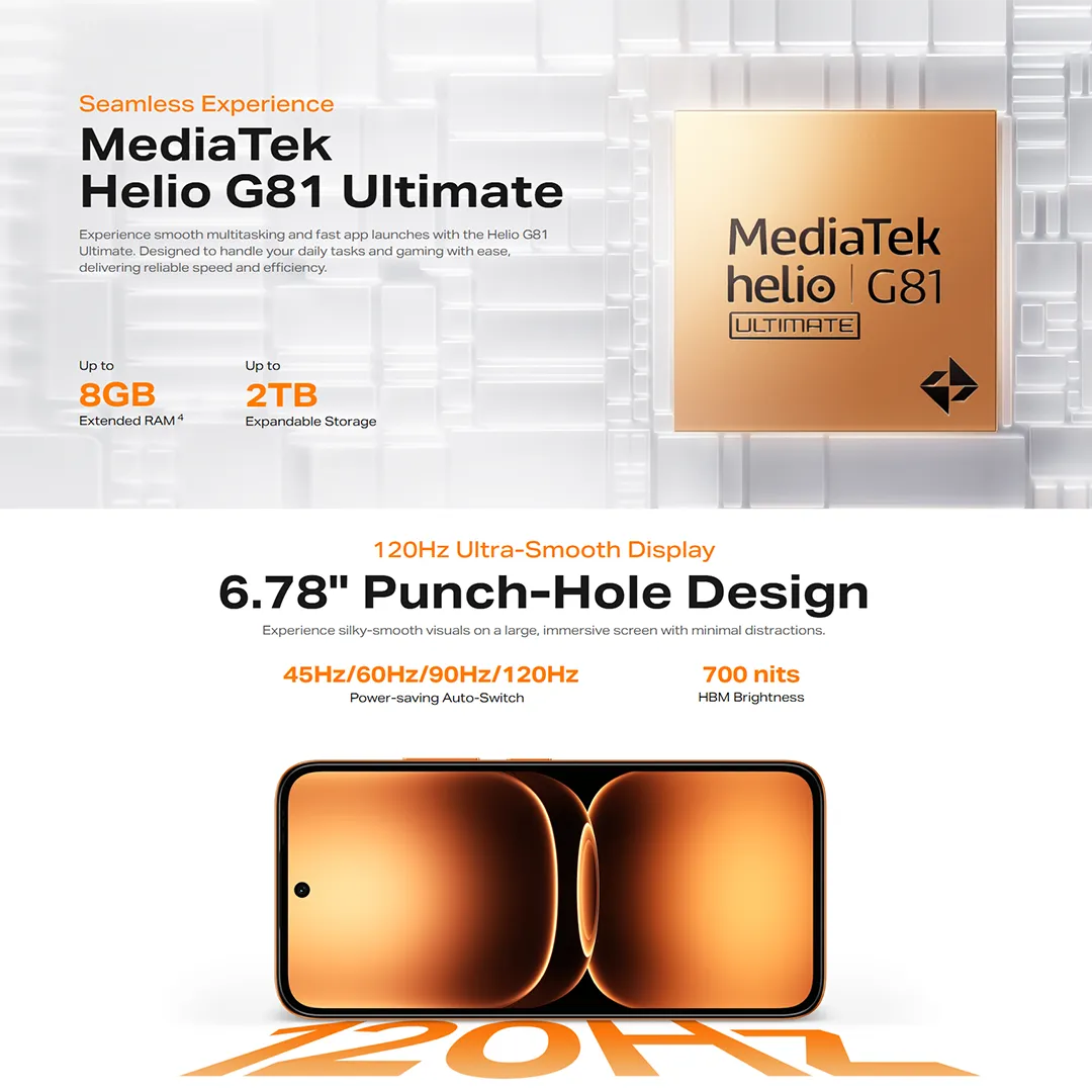 MediaTek Helio G81 Ultimate Processor – Optimized for smooth gaming & efficient performance