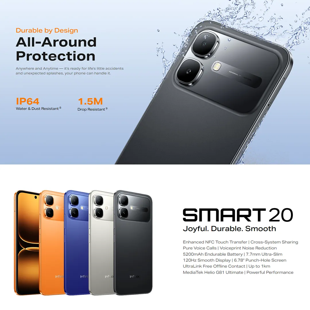 Infinix Smart 20 Smartphone MediaTek Helio G81 Ultimate Processor 6.78" Punch-Hole Screen 5200mAh Battery with 10w Charging